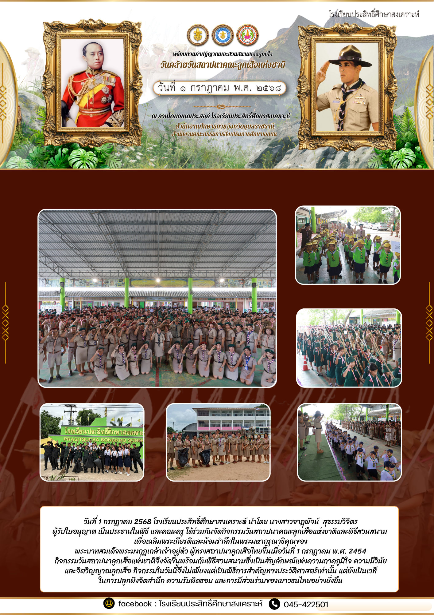โรงเรียนประสิทธิ์ศึกษาสงเคราะห์ ได้จัดกิจกรรมวันสถาปนาคณะลูกเสือแห่งชาติและพิธีสวนสนามเพื่อเฉลิมพระเกียรติและน้อมรำลึกในพระมหากรุณาธิคุณของพระบาทสมเด็จพระมงกุฎเกล้าเจ้าอยู่หัว